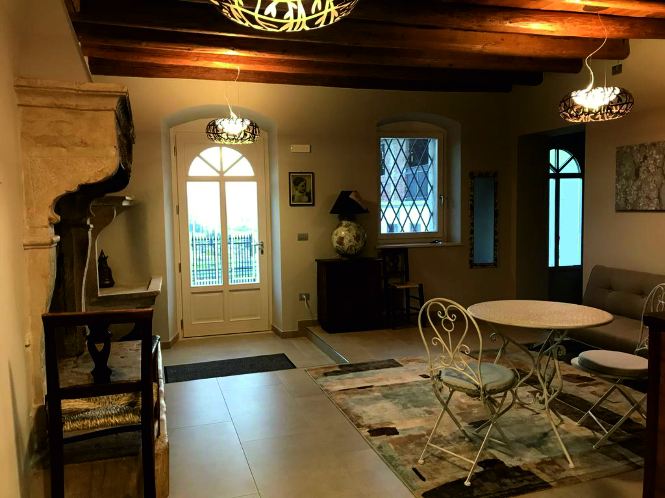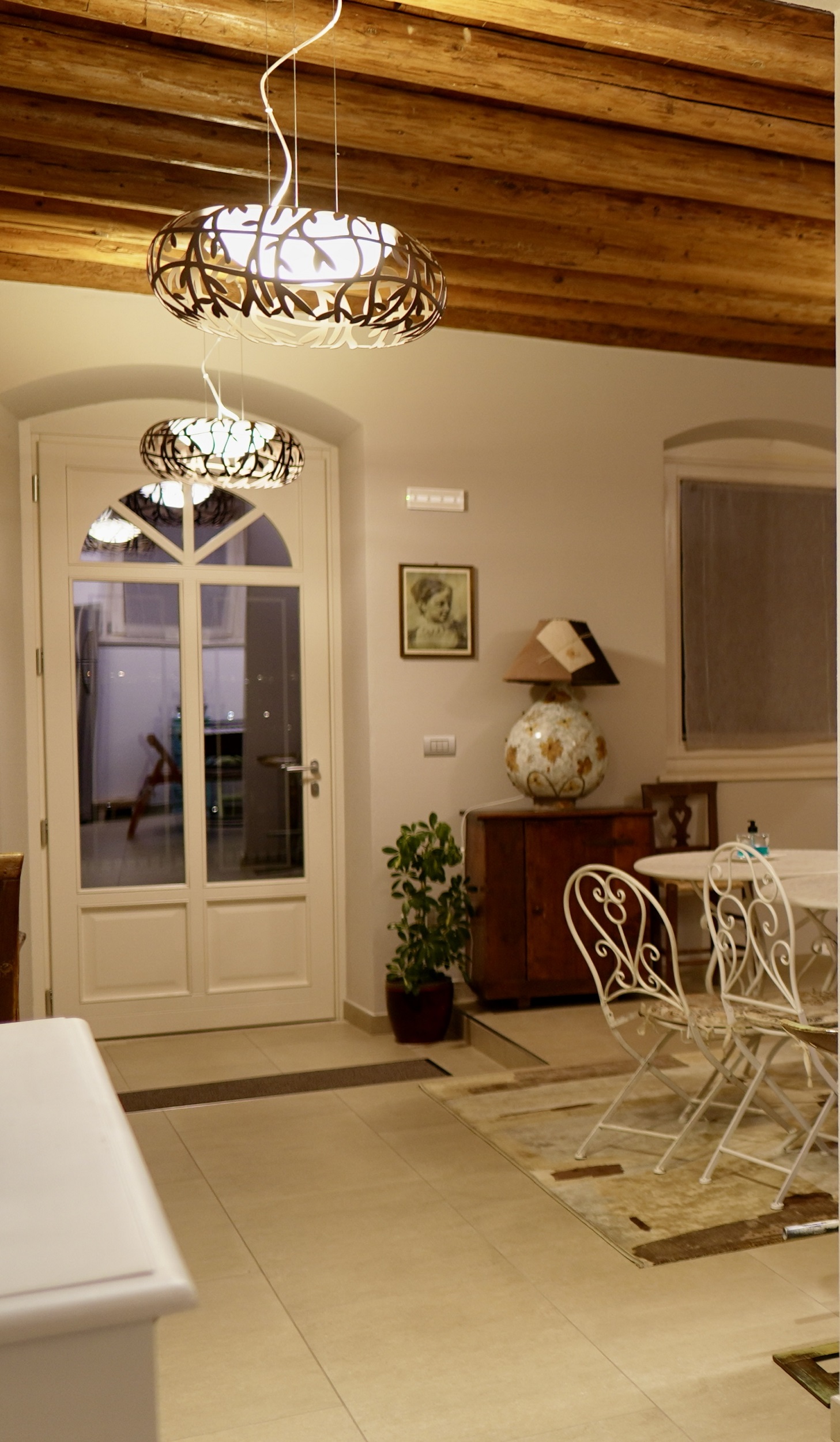 This is a rustic family site in Valpolicella with exposed beams and antique fireplace from the 1800s, antique furniture a refined originality conferred by a modern touch and a particular lighting. The apartment is on two floors and has three double rooms equipped with every comfort, air conditioning, underfloor heating, smart TV, Netflix and Wi-Fi, with its own bathroom and showers with mixer. The area of the living room, enriched by an antique fireplace, is located on the ground floor with large windows and overlooking the courtyard has a magnificent view of the Valpolicella. The apartment has a new cosy kitchen, equipped with everything you need, overlooking the living room. They embellish this historic rustic, the cellars with original faces dating back to the early 1800s.